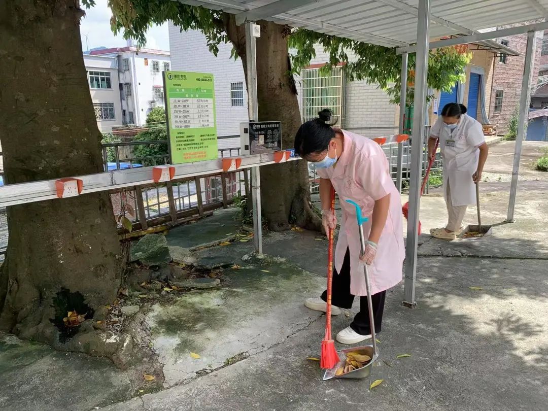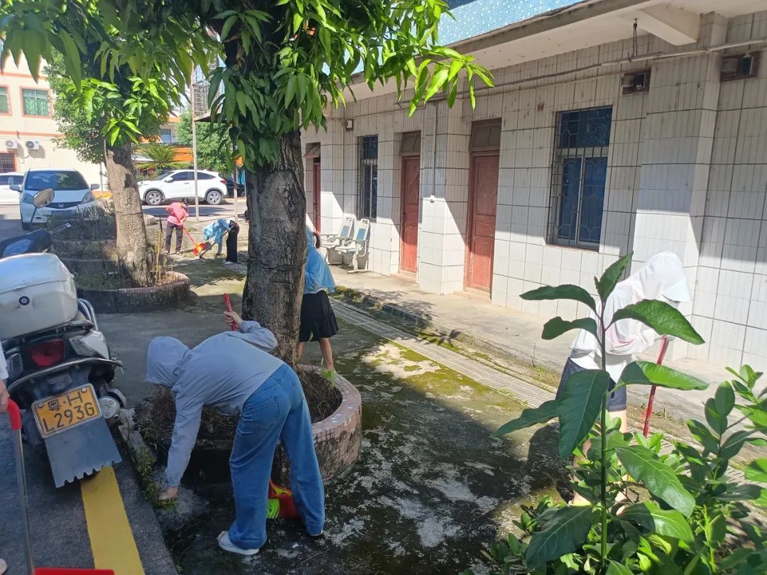 洲仔镇卫生院动员全体干部职工20人积极参与到卫生大扫除的行动中,保持院内环境整洁,重点排查房前屋后、楼顶、绿化带等卫生死角,及时清理废弃容器、水养植物容器等积水。